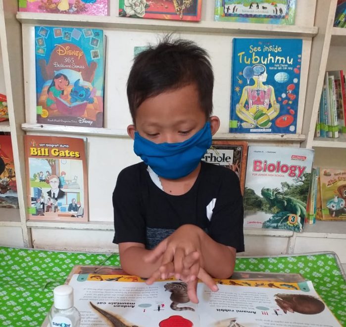For three months, Yoda was waiting for the time when he was able to come to Cinta Baca library at Cimarga, West Java because of the pandemic. When he found out that the library was finally open again with some restrictions, he patiently and eagerly waited to enter the library to comply with the restrictions for the number of visitors. He also complies with all health protocol regulations in the library.